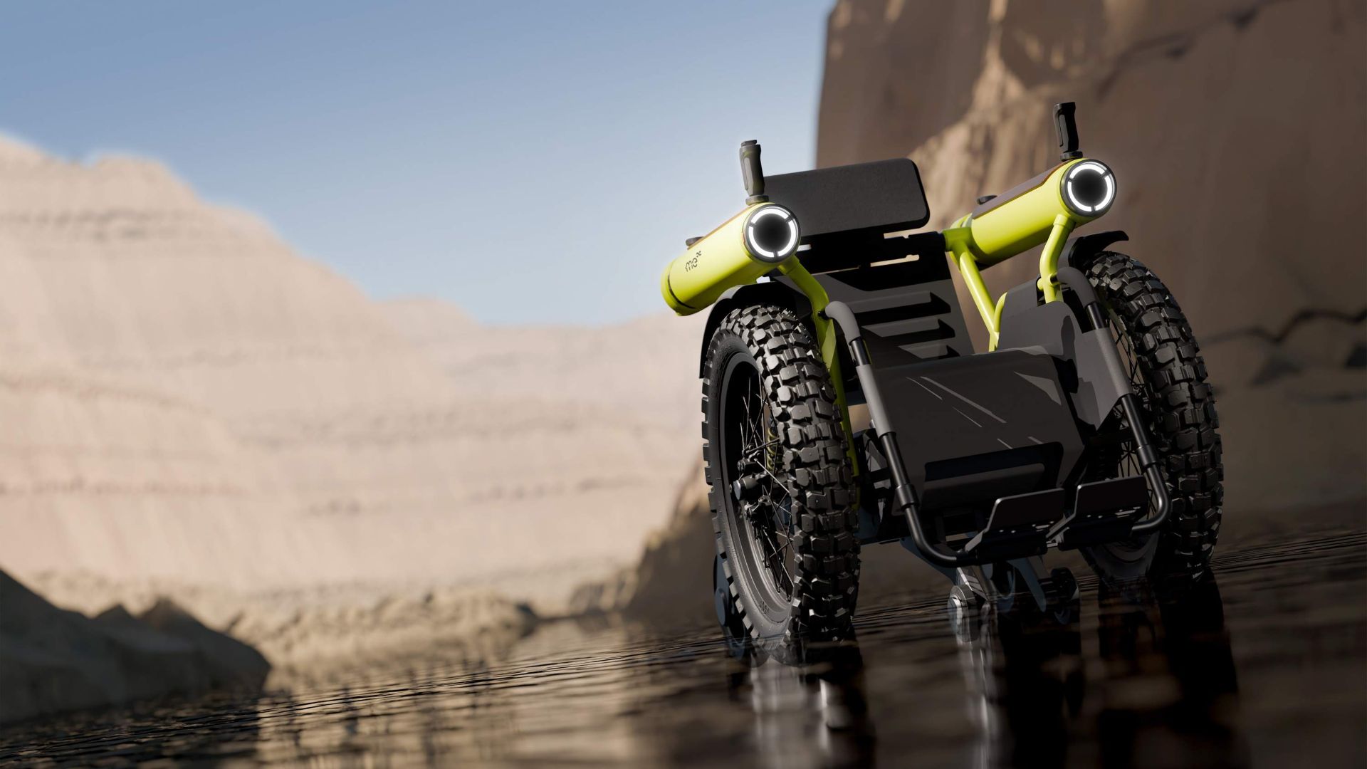 A motorizált kerekesszékeket általában sík felületre, csekély szögű emelkedőkre tervezik. A Toyota Challenge Me ezzel szemben terepjáróként küzdi le nemcsak a járdaszegélyeket, de akár a hegyi ösvényeket, vízmosásokat is. Hátsó kerekei hosszú úton rugóznak, az elsők sárban, homokban is megkapaszkodnak, egy kihajtható hátsó „láb” pedig megtámasztja a széket, ha a felhasználó túl meredek emelkedőn próbálna felkapaszkodni. A kartámaszok vaskos hengerek, amelyekbe fényszórókat és hátsó helyzetjelzőket építettek, és még ki tudja, mit – látványnak mindenesetre meglehetősen robusztusak.