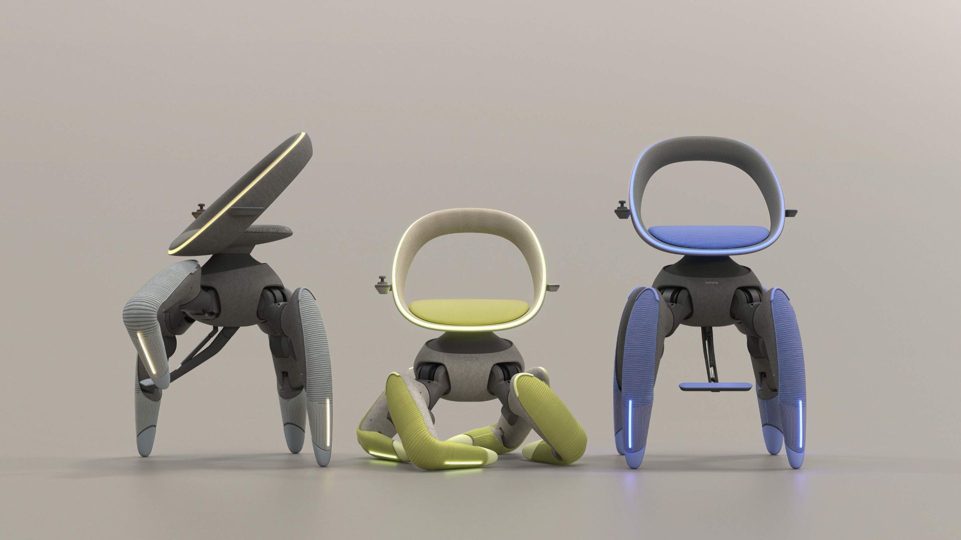 A Toyota Walk Me például első pillantásra négylábú bárszéknek tűnhet. A négy láb azonban hajlítható, forgatható és kinyújtható, magyarul képesek járni, leguggolni, felágaskodni, letérdelni, miközben az utas kényelemben, nyugalomban, biztonságban jut el íróasztalától a liftig vagy a földszintről az emeletre, illetve szállhat fel a buszra.