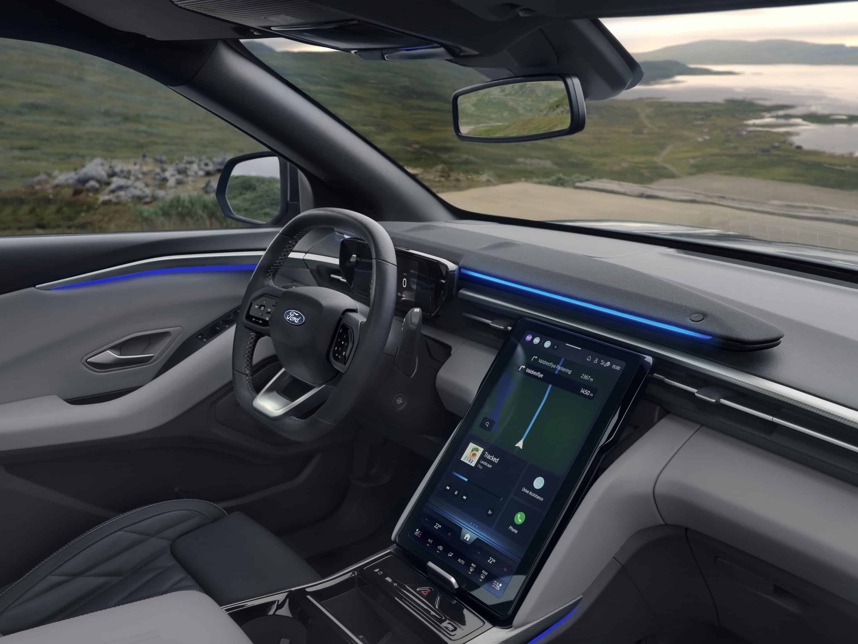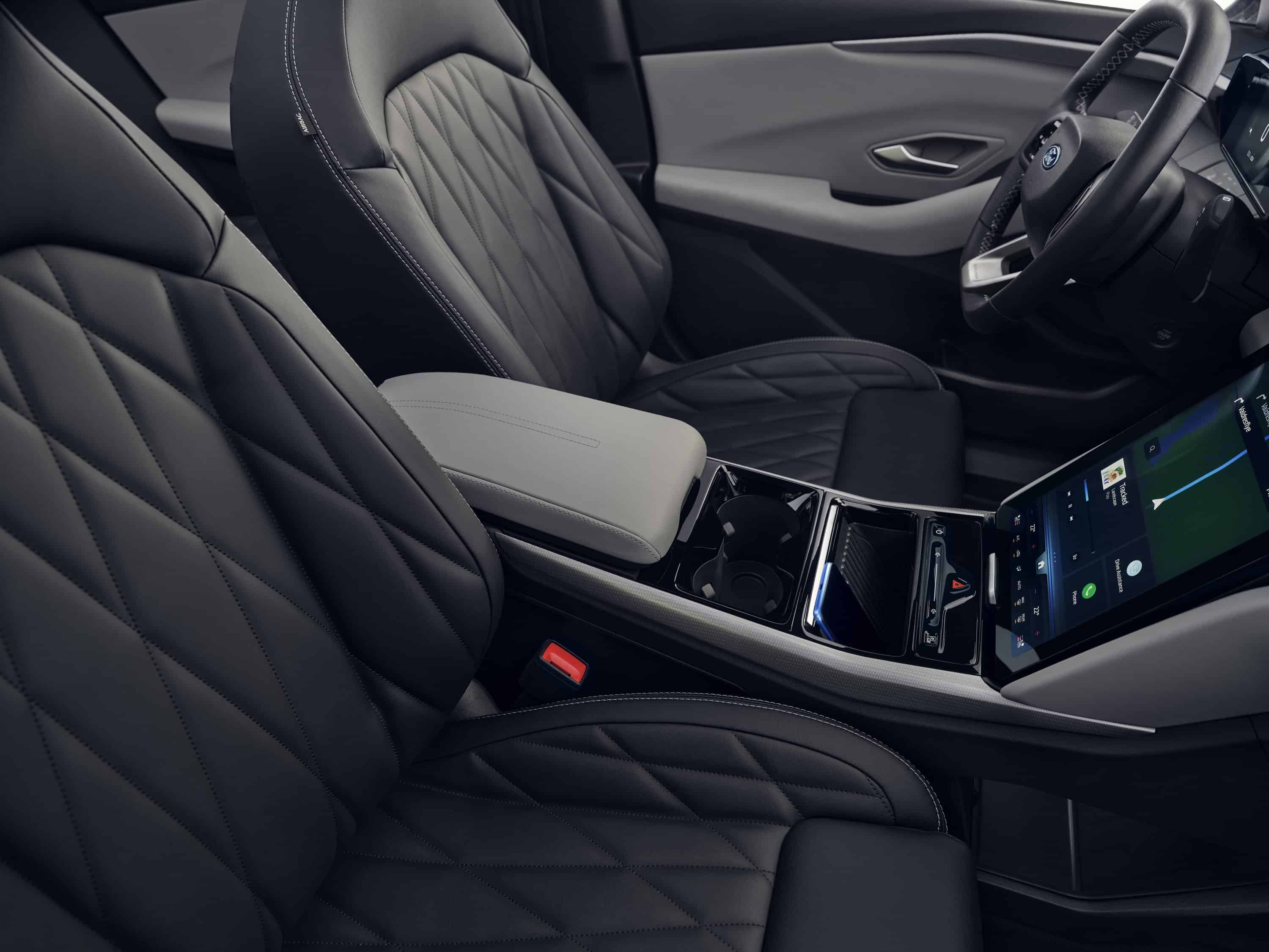 Az ötszemélyes utastér tervezői tökéletesen kiaknázták az elektromos architektúra nyújtotta rengeteg helyet. Ezért az Explorer kabinja nemcsak tágas, hanem rengeteg praktikus ötletet is rejt. Az egyik legmeglepőbb megoldás az, hogy a 15 colos, álló tájolású központi érintőképernyő több mint 30 fokos íven emelhető és süllyeszthető, így a vezető mindig tökéletesen beállíthatja az üléspozíciójához, vagy éppen a pillanatnyi helyzethez, sőt a képernyő mögött rejtett értékmegőrző rekesz is található.