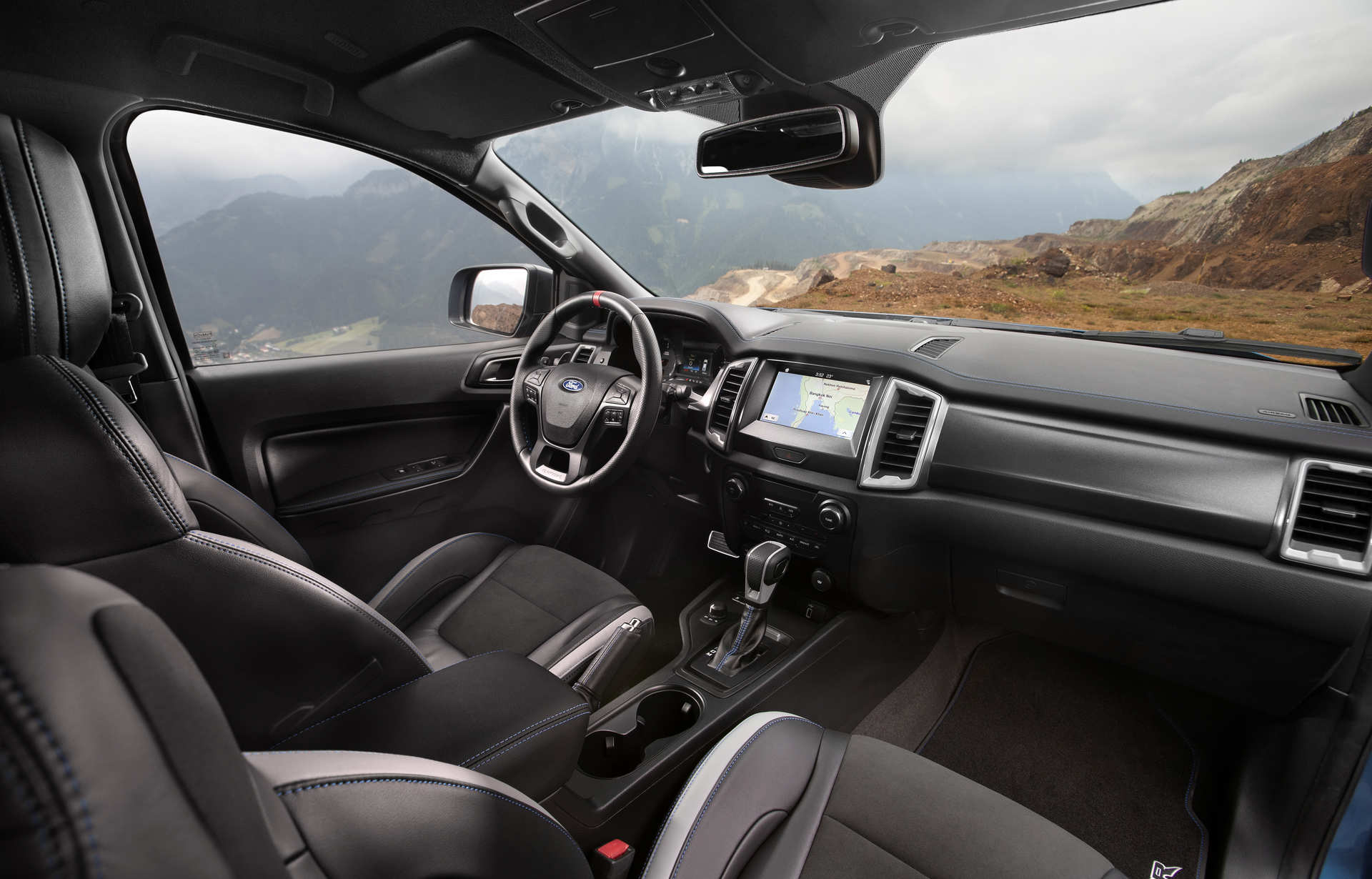 Rangerben. Nem számít hová és kikkel utazik, a gépjármű komfortos belső terének köszönhetően Ön a városi terepjárókhoz hasonló luxust és stílust élvezheti. A képen látható Wildtrak belső terében a test vonalát követő, és a hátat jól megtámasztó, ülések találhatóak, bőr ülésborítással és domború Wildtrak emblémával. A 8 irányban, elektromosan állítható vezetőülés pedig arról gondoskodik, hogy mindig kényelmesen ülhessen. Az új Ranger átgondolt dizájnja számos modern funkciót és technológiát kínál beleértve az új FordPass Connect* választható, beépített modemet és a Ford SYNC 3 rendszert 8"-os, színes érintőképernyővel és navigációval, aminek segítségével még ismeretlen terepeken is könnyedén eligazodhat.
