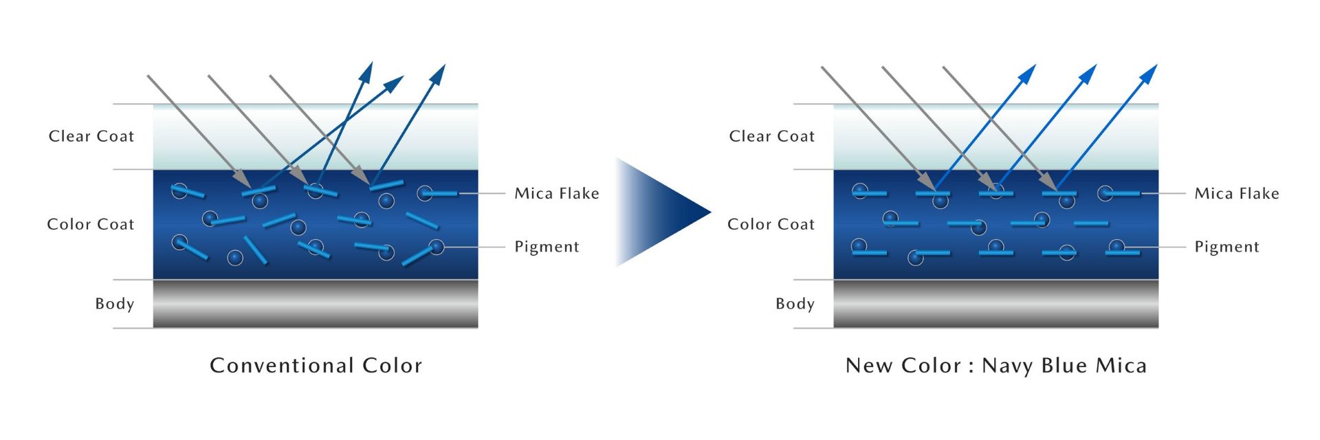 A csapat kifejezetten magasra helyezte a lécet maga előtt: az volt a feladat, hogy az eleve közkedvelt Deep Crystal Blue árnyalatnál is erősebb, hatásosabb színt alkossanak. Ennek érdekében nem egy-, hanem többféle micaszemcsét kevertek a festékbe: az egyik típus a ragyogó, magas fényű megjelenést segíti elő, míg a másik a mély színért felel. Az eredmény: egy olyan, erős kontrasztokkal bíró szín, amely normál vagy gyenge fényviszonyok mellett (borult időben, este) elegáns, telített kékként parancsol tekintélyt, míg erős napfényben megtelik élettel.