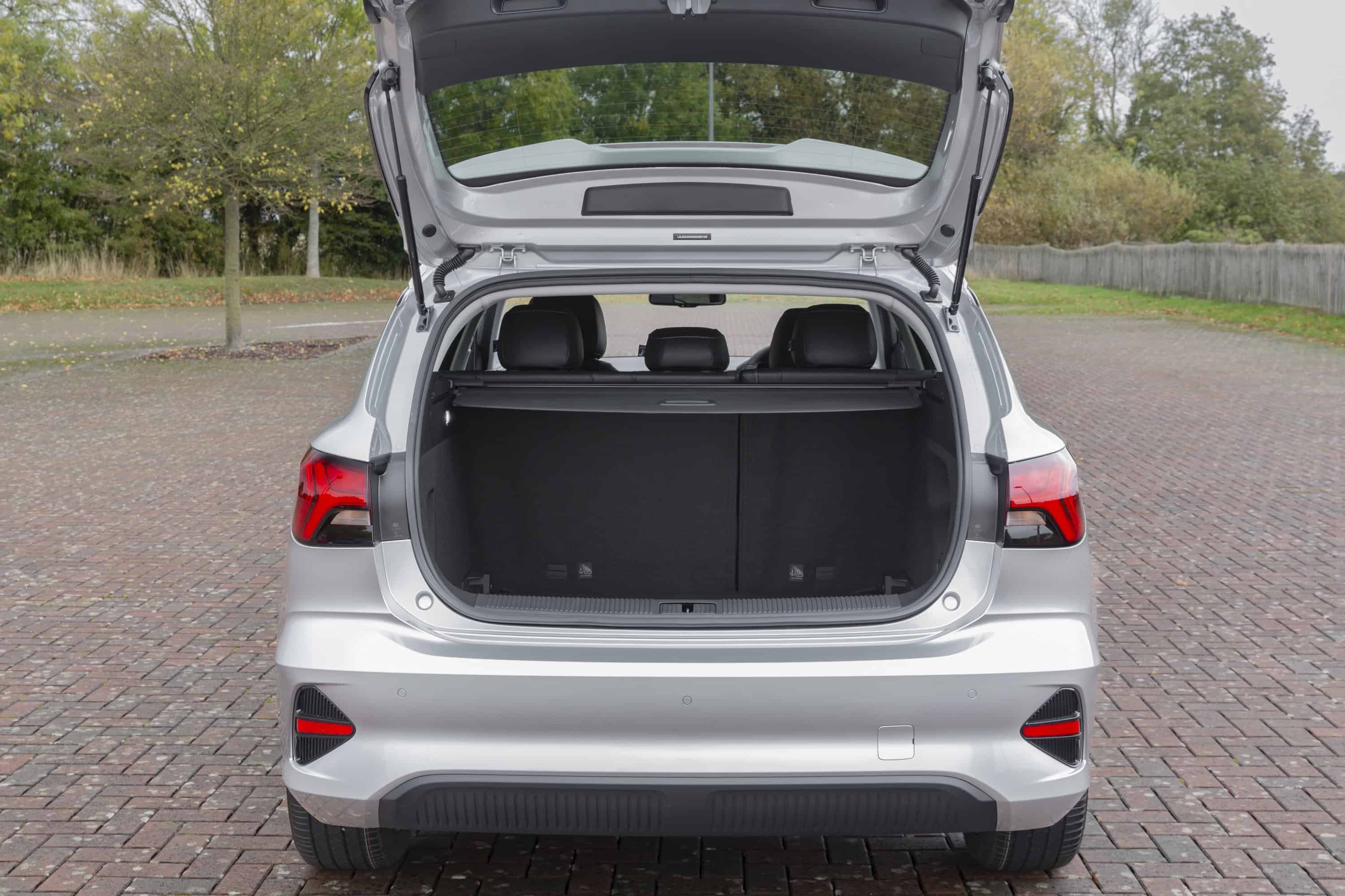 Az MG5 szedánnak is különleges, kupésan kialakított C oszlopával kifejezetten elegáns, sportos jelenség, ám ebben a formájában az európai piacokon nem forgalmazzák az alsó középkategóriás modellt: helyette a tágas, impozáns kombivariáns érkezett meg hozzánk 2022-ben, méghozzá tisztán elektromos hajtáslánccal. Ezzel az MG történelmi tettet hajtott végre, hiszen a villanymotort korábban senkinek nem jutott eszébe kombikarosszériával társítani. Az MG5 pedig hozza a papírformát: a 4,6 méteres modell csomagtartója már alaphelyzetben is tágas, 479 literes, a hátsó üléseket lehajtva pedig 1367 literig bővíthető. A 455 kilogrammos maximális terhelhetőséggel messzemenőkig ki is használható ez a sok hely, ha pedig ennél is több szállítani valónk akad, az MG5 akár 500 kilogrammot vontathat, ami nem mondható általánosnak a villanyautók mezőnyében. A modell kétféle hajtáslánccal elérhető: az 50 kWh kapacitású akkumulátorhoz 130 kW (177 LE) csúcsteljesítményű villanymotor társul, míg a nagyobb, 61 kWh-s akkuval szerelt modellek 110 kW-os (150 LE) villanymotort kapnak – az előbbi 320, az utóbbi 400 kilométeres maximális hatótávolsággal büszkélkedhet. A menetdinamika terén nincs különbség a variánsok között (7,7 mp alatt gyorsulnak 0-100 km/órára, végsebességük 185 km/óra).