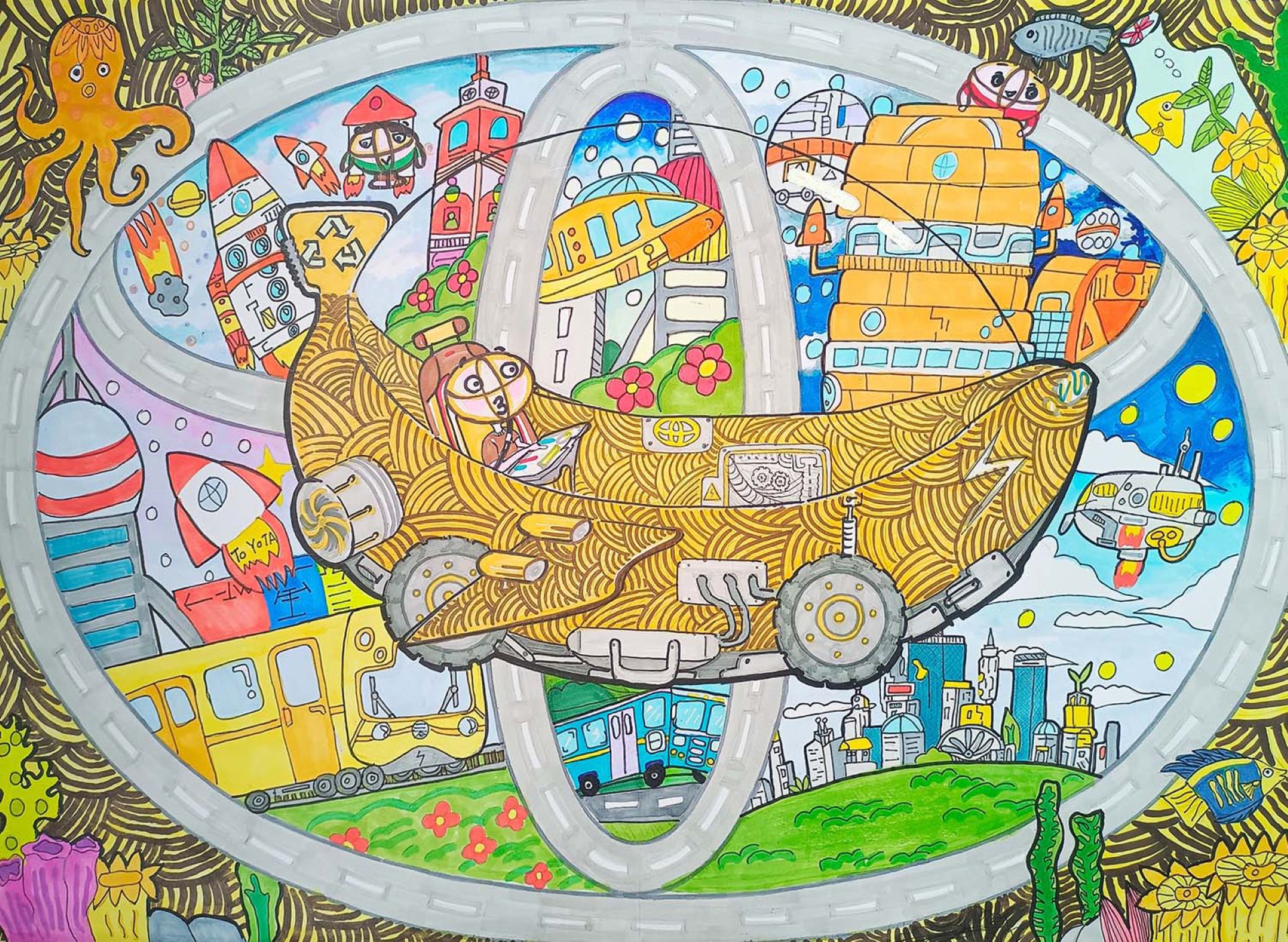 A hét év alatti korosztály győztese, a kenyai Briella Jamilla Masava (4 éves) pont egy ilyen autót képzelt el: a Love Car csókokat dobál, hogy jobb hellyé tegye a világot. Ilyen egyszerű volna? Talán igen! A 8-11 évesek között a thaiföldi Pleamfah Siwanarak (9 éves) állatetető autója nyerte el a zsűri tetszését: a jármű speciális radar segítségével keresi meg a kóbor állatokat, és megeteti őket, hogy ne kelljen nélkülözniük.
